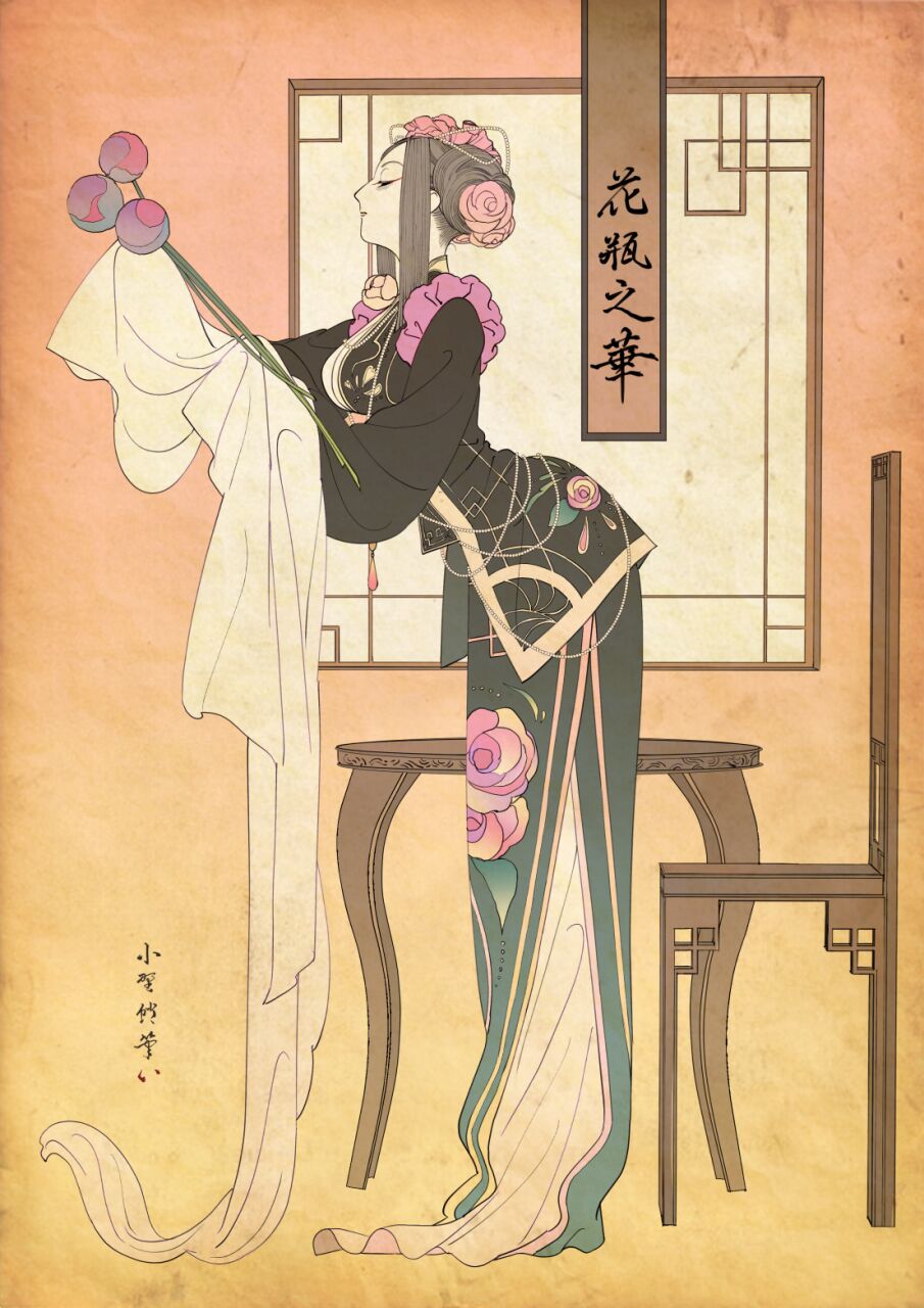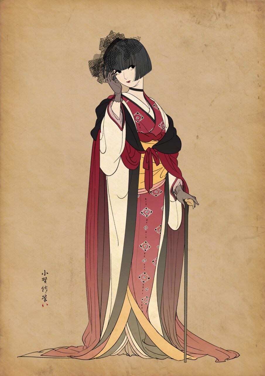 和風から洋風まで艶やかに描き上げる現代の浮世絵師「オノ・タコ」氏 × 京友禅デザイン画「草稿」。浮世絵と伝統芸能の妙なる共鳴を描く。