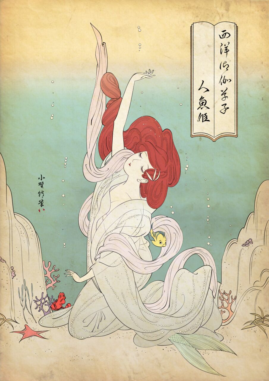 Artist Draws Disney Princesses And Sailor Moon In A Unique Style That Looks Like Traditional Japanese Prints