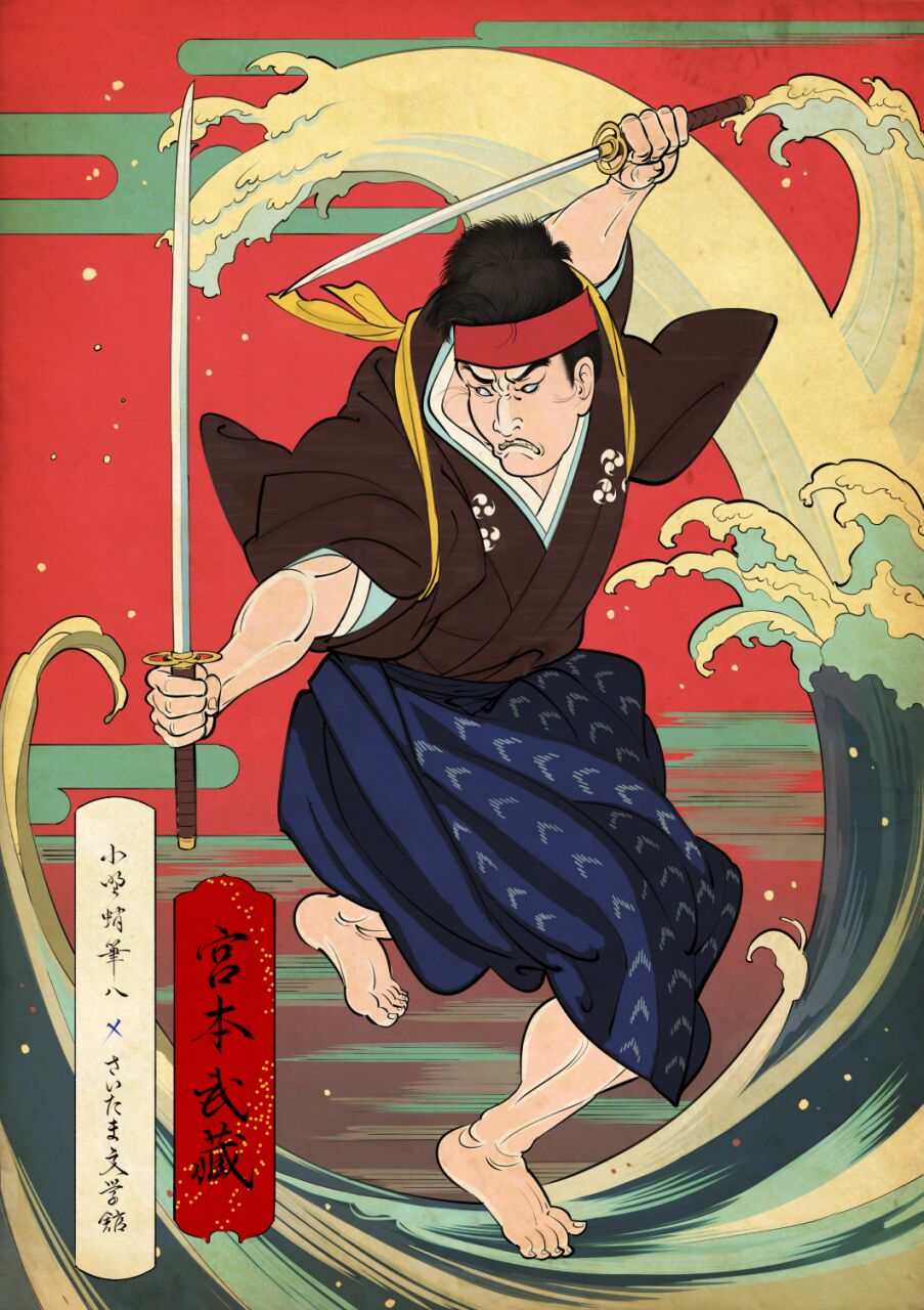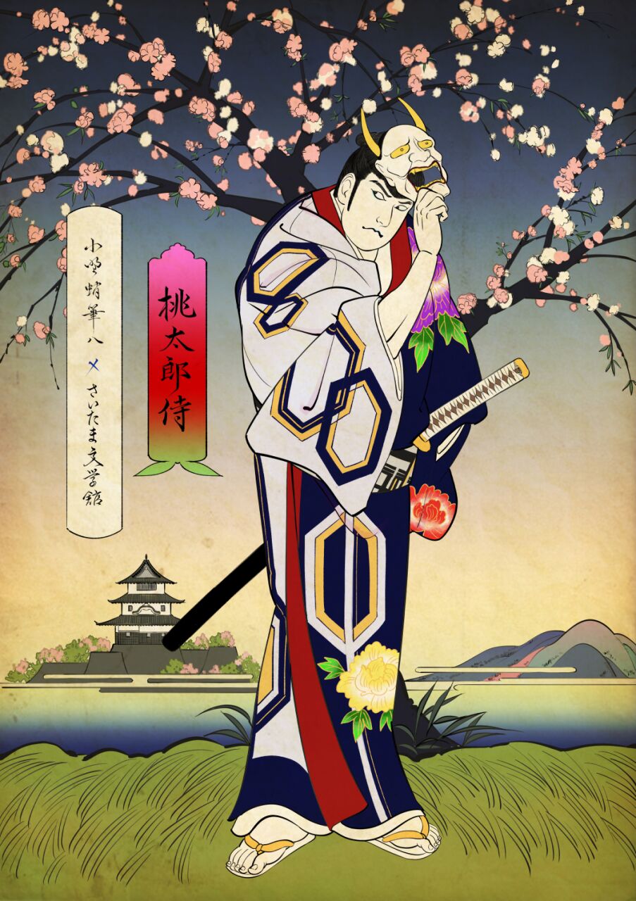 ・「『桃太郎侍』生みの親 山手樹一郎の世界」パンフレット等イラスト/さいたま文学館