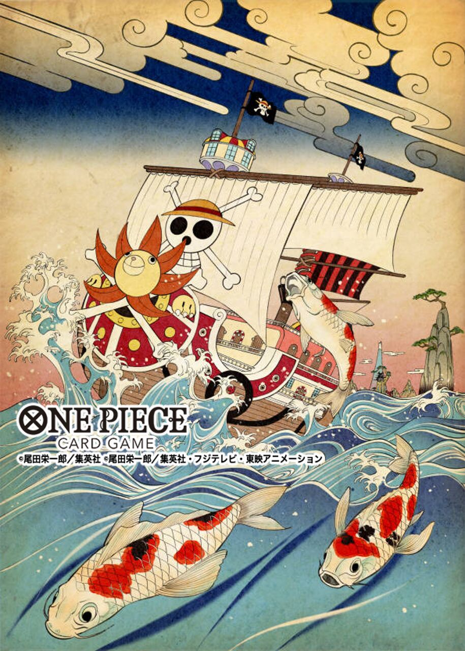 ・「ONEPIECEカードゲーム」英語版1周年記念セット中プレイマット、麦わらの一味カードデザイン、サニー号スリーブデザイン/水野プロダクション